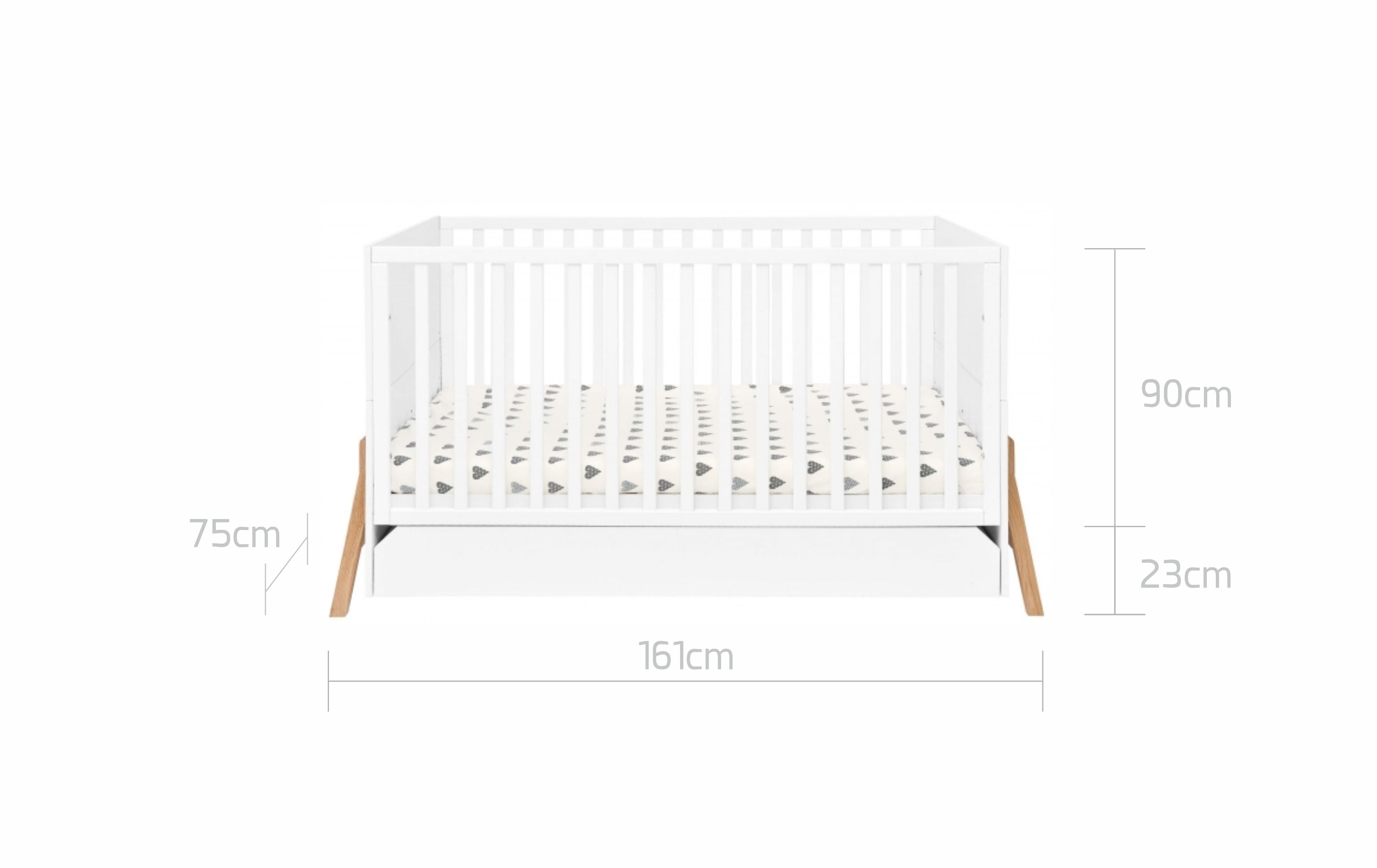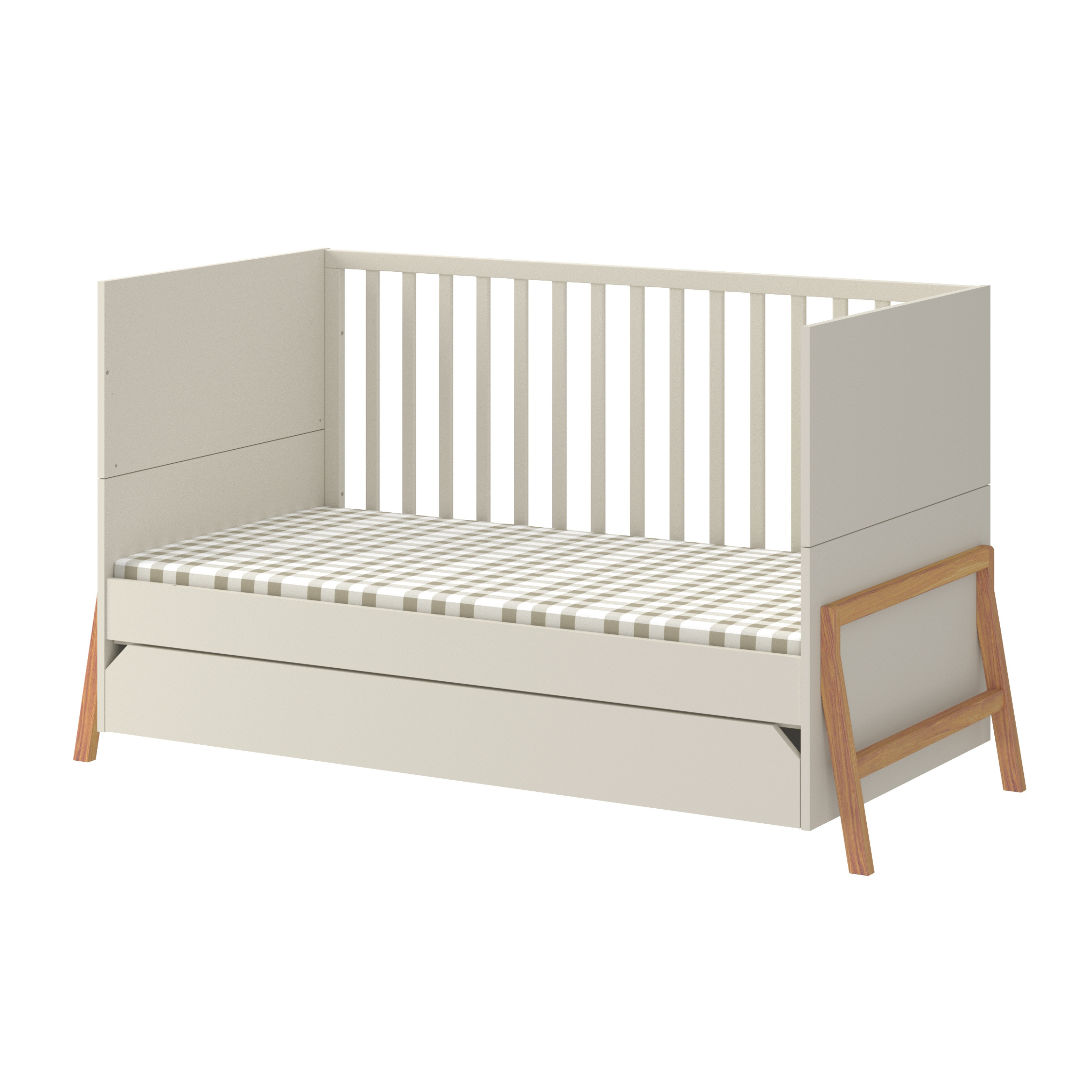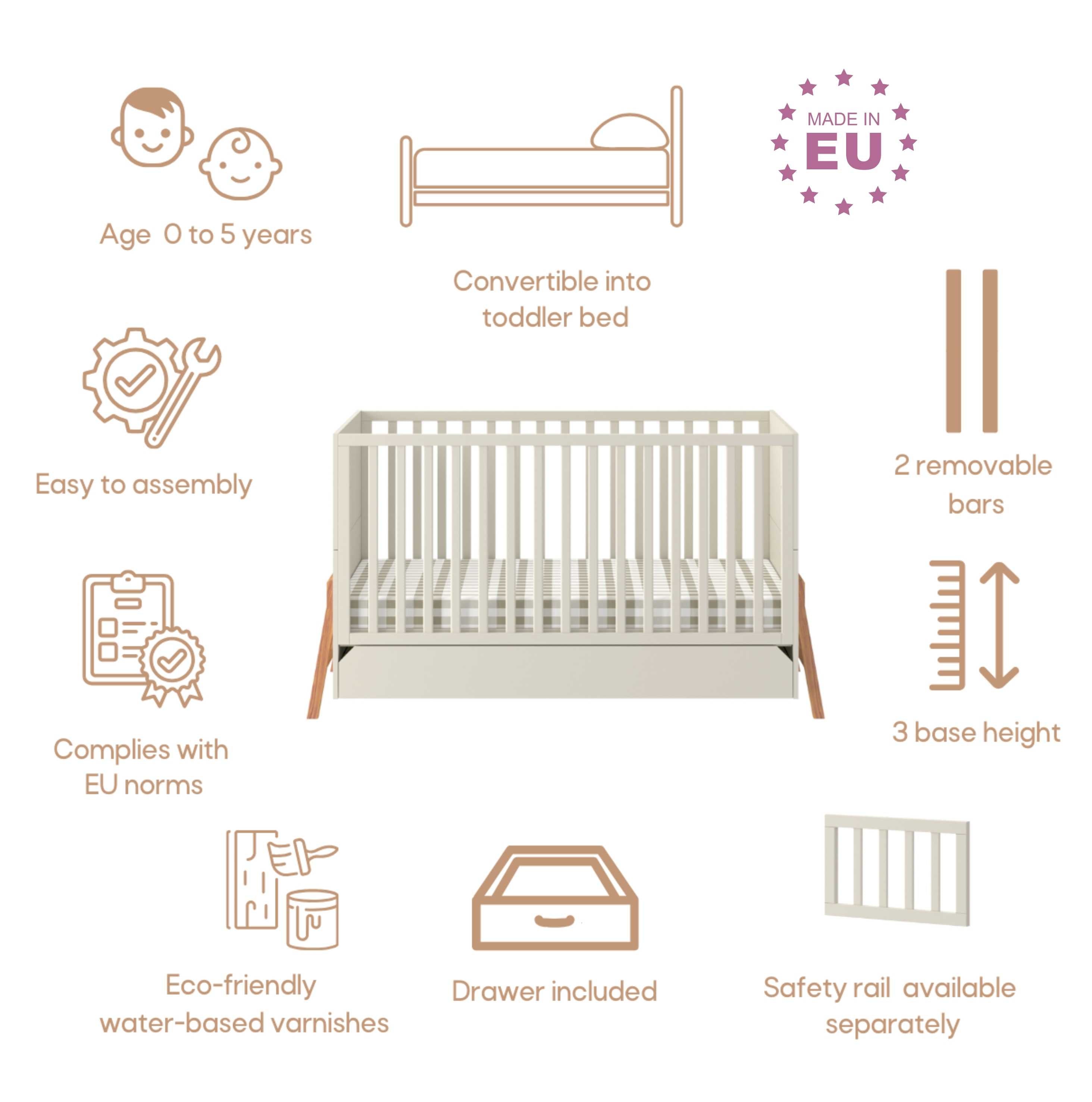 - A convertible bed with drawers grows with your child, transitioning from a cot to a toddler bed and eventually to a daybed. Spacious drawer provides storage for bedding, toys, or accessories. When the bed is converted into a toddler bed and a daybed, you can attach an optional bed rail for added security during your child's sleep.