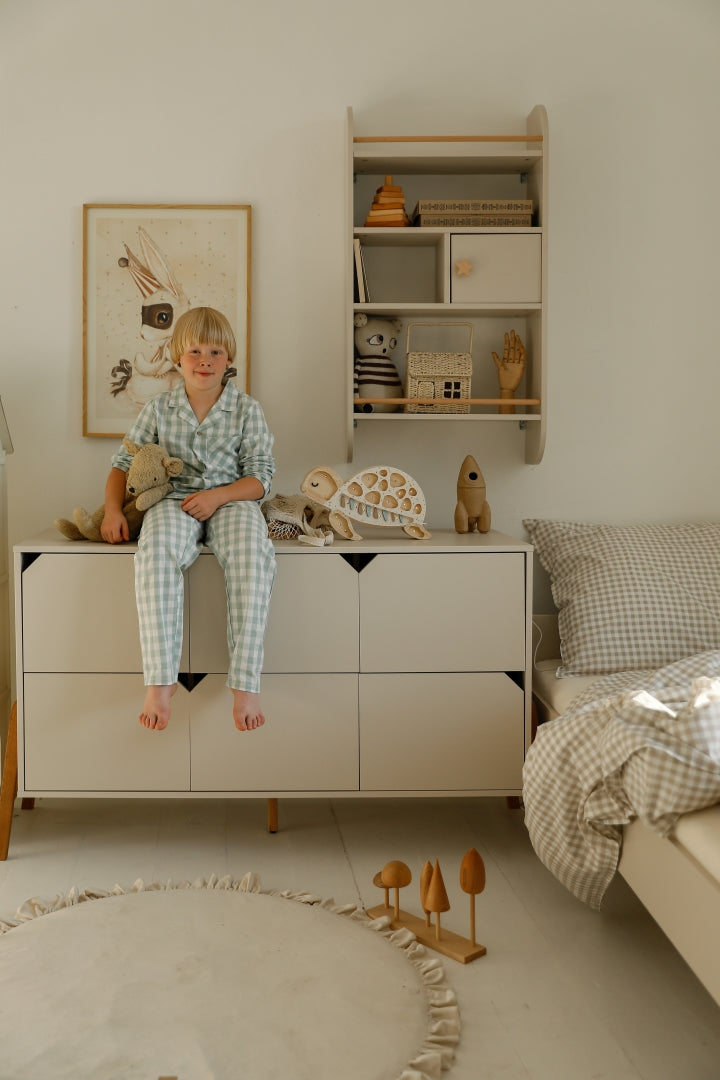 Smart storage solutions help make it easy to tidy up toys and clothes. No clutter, but a peaceful room!